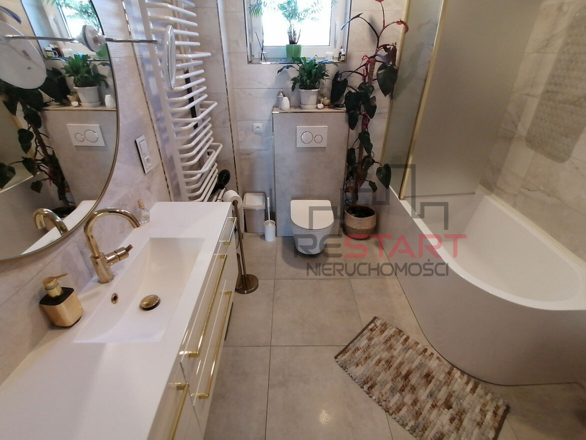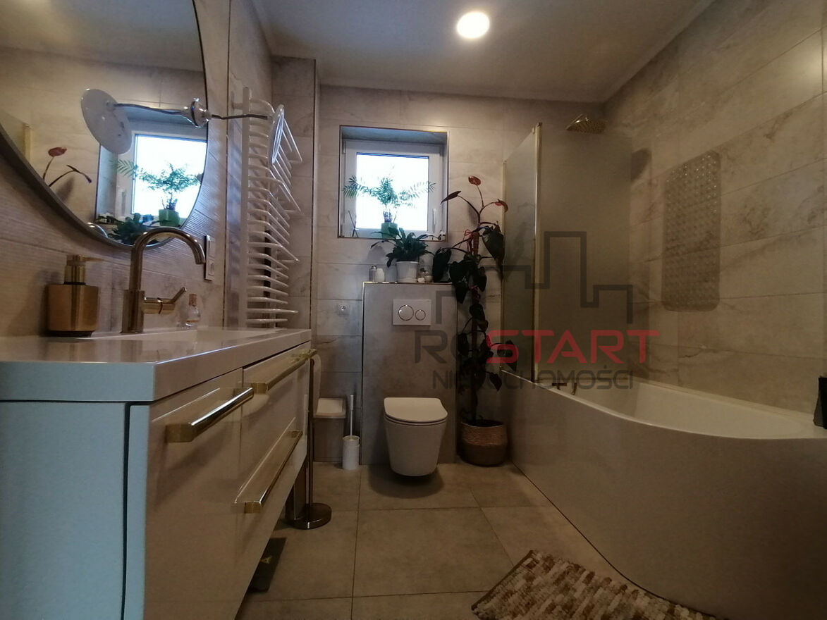 W całym domu ogrzewanie podłogowe, pompa ciepła wraz z magazynem energii oraz fotowoltaiką. Dodatkowo w salonie kominek.