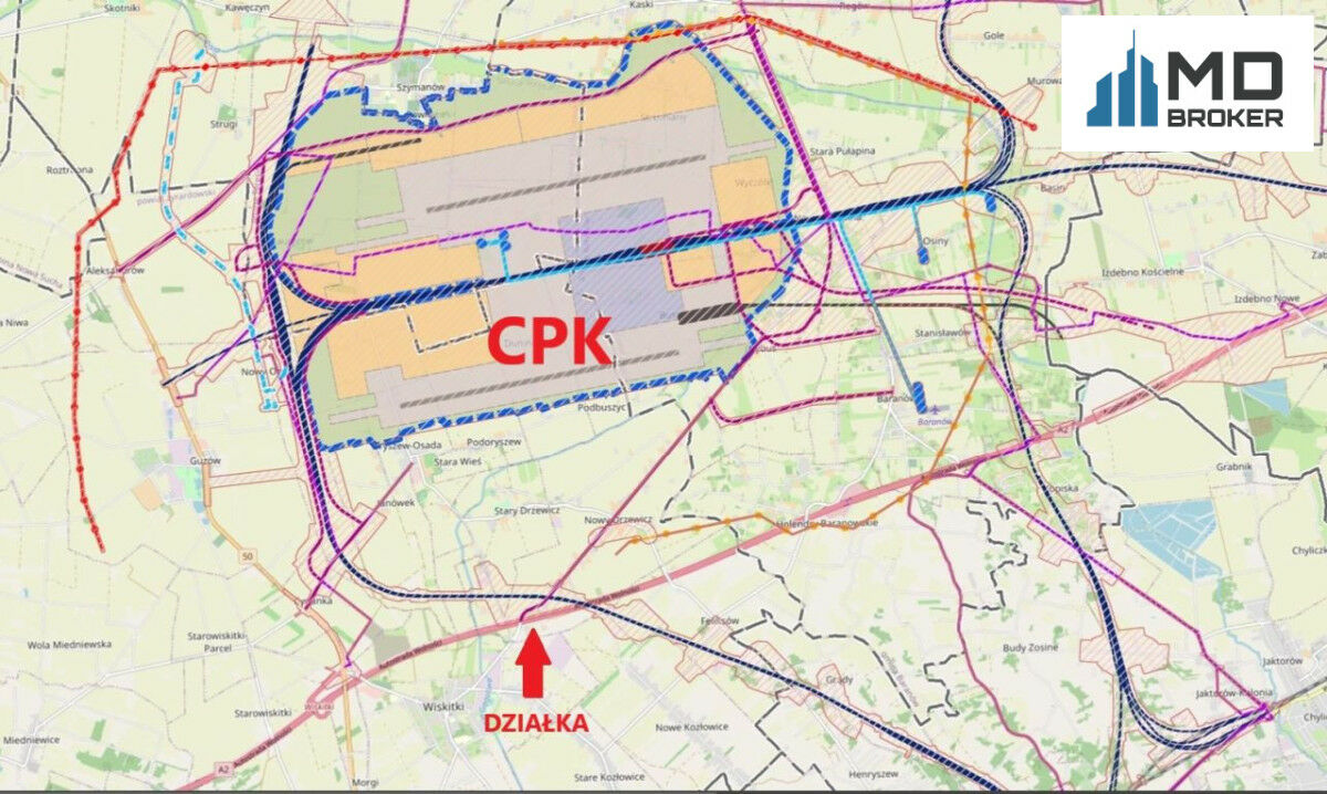 Biuro Obrotu Nieruchomościami MD Broker zaprasza do zapoznania się z ofertą:Na sprzedaż grunt inwestycyjny niezabudowany o powierzchni 32693 m2 położony w części inwestycyjnej gminy Wiskitki (powiat żyrardowski) w pobliżu węzła komunikacyjnego autostrady A2 i drogi krajowej DK50 oraz w bezpośrednim sąsiedztwie CPK.